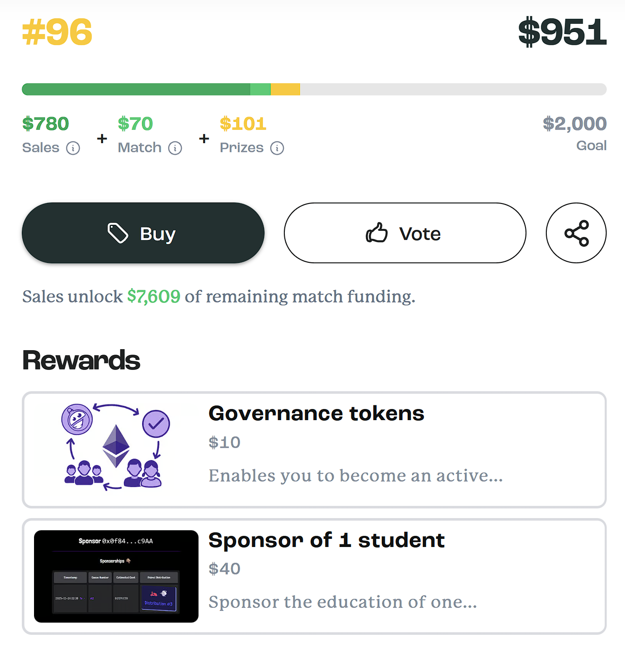 We've raised $951 in funding for our Web3 Sponsors 🫶🏽 project at Artizen: https://artizen.fund/index/p/elimuai-sponsors?season=6