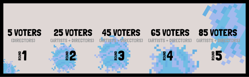 *By the end of this program we will have built a body of 100 artists, selected by their peers, and who can vote on future rounds.
