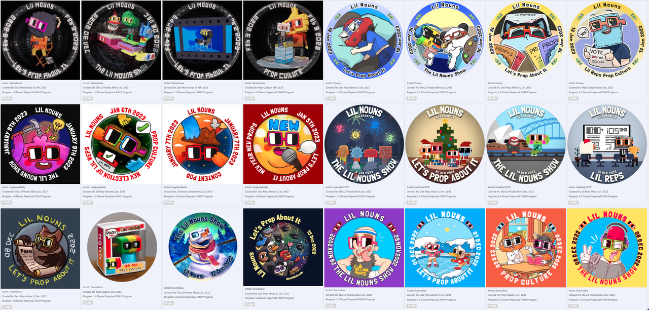 The Artist Program is an idea we came up with after running two experiments in Lil Nouns, the PPP (Perpetual POAP Program) and the Airdropoooor Program.